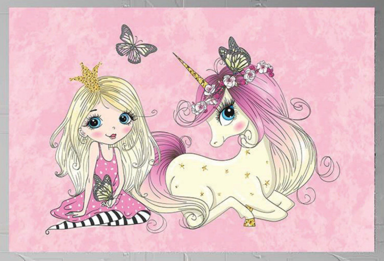 فرشینه اتاق کودک دخترانه اسب تک شاخ و دختر کد h360